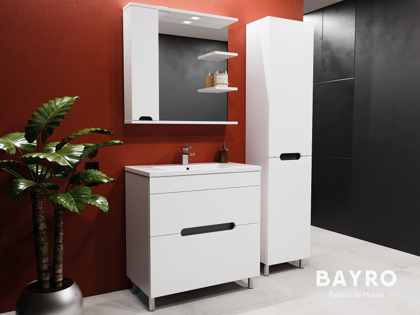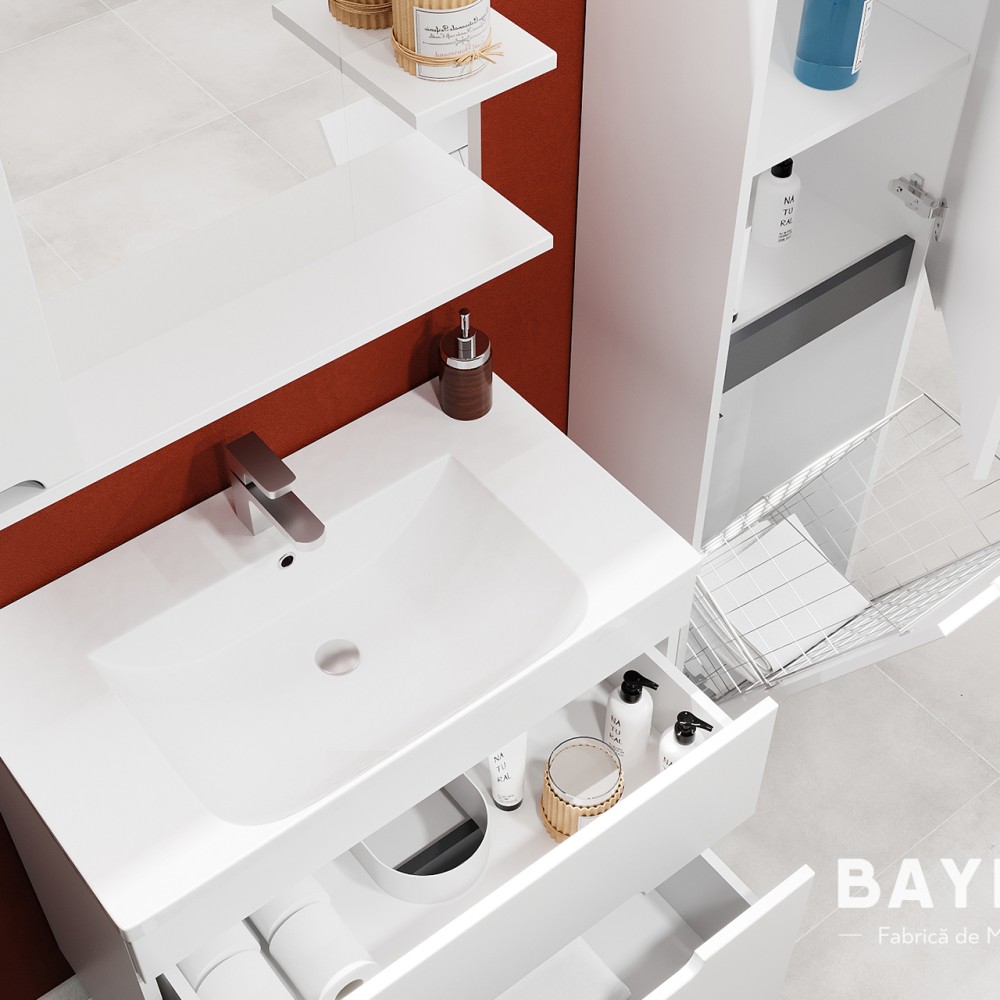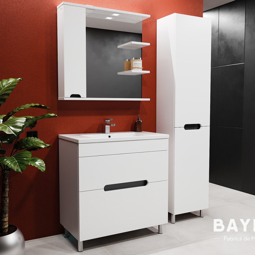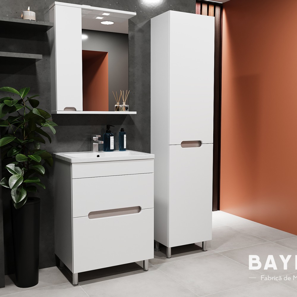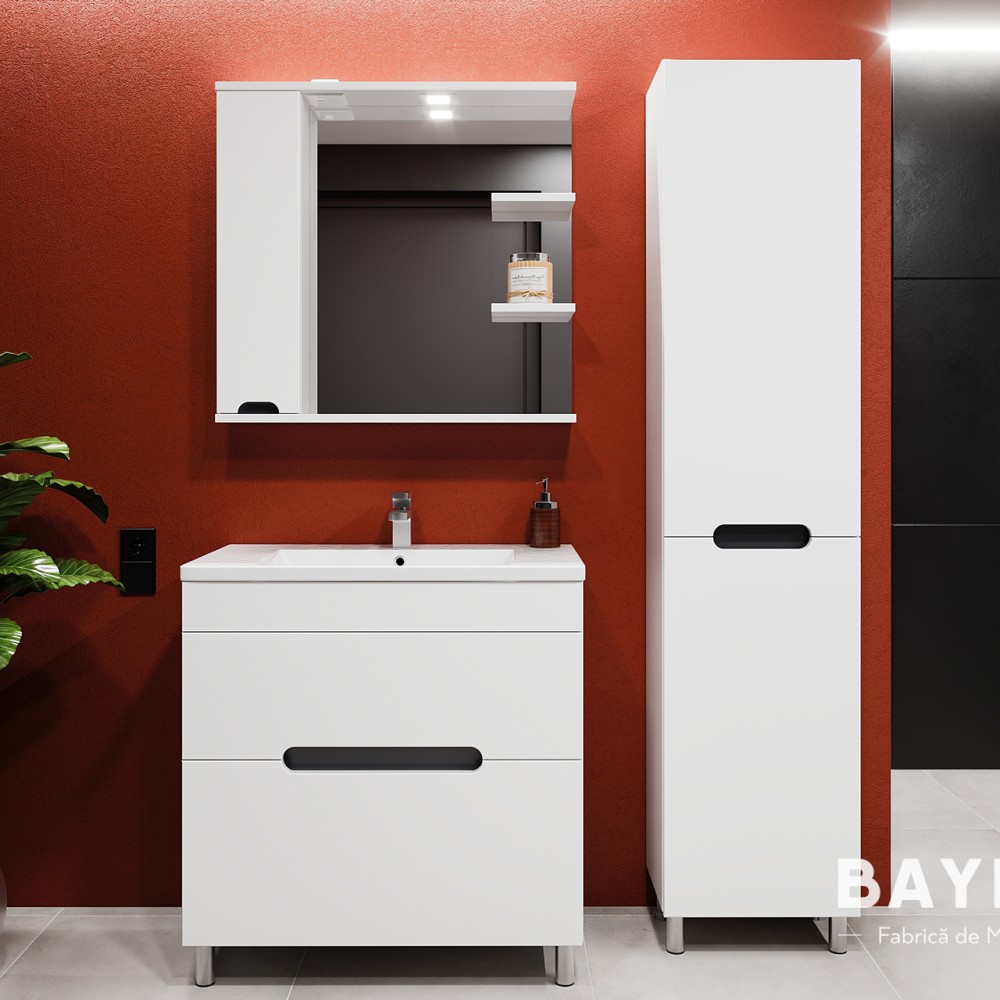 Etna - o serie de mobilier de baie cu design minimalist și forme precise. Lavoarul se remarcă prin simplitate, iar dulapurile - atât cel cu lavoar, cât și cel de tip coloană - putem spune că sunt o adevărată poveste redată într-un set elegant. Mânerele ascunse au inserate elemente, iar contrastul este superb!