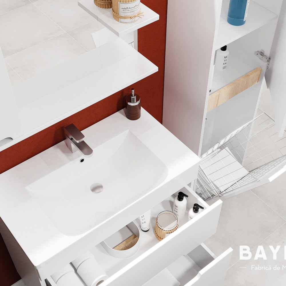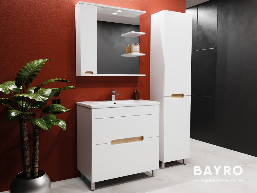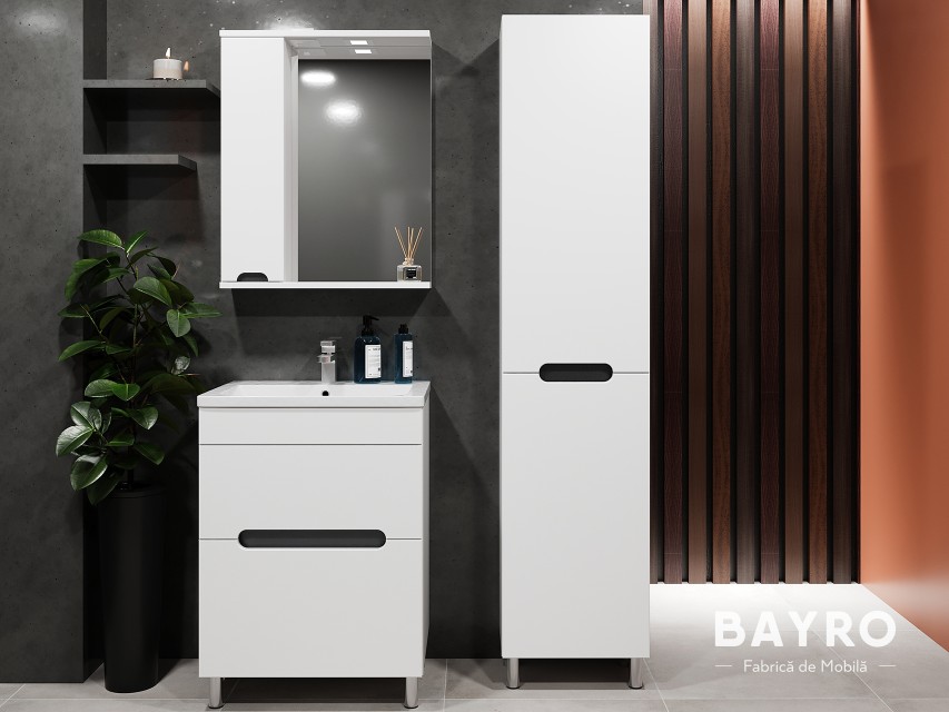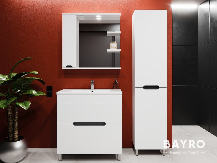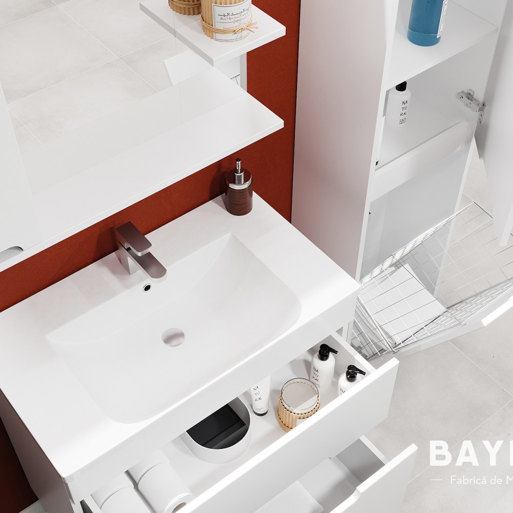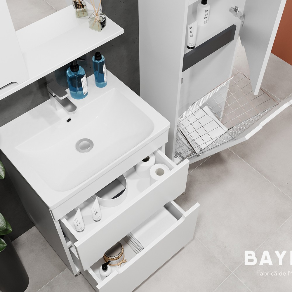 Etna - o serie de mobilier de baie cu design minimalist și forme precise. Lavoarul se remarcă prin simplitate, iar dulapurile - atât cel cu lavoar, cât și cel de tip coloană - putem spune că sunt o adevărată poveste redată într-un set elegant. Mânerele ascunse au inserate elemente, iar contrastul este superb!
