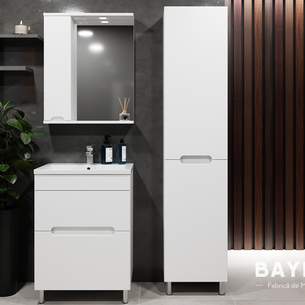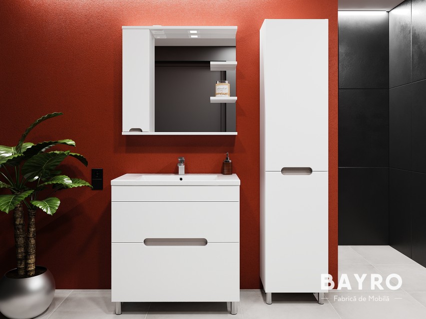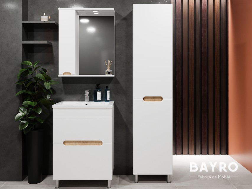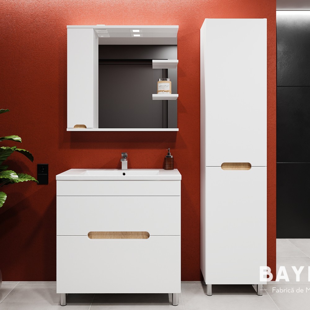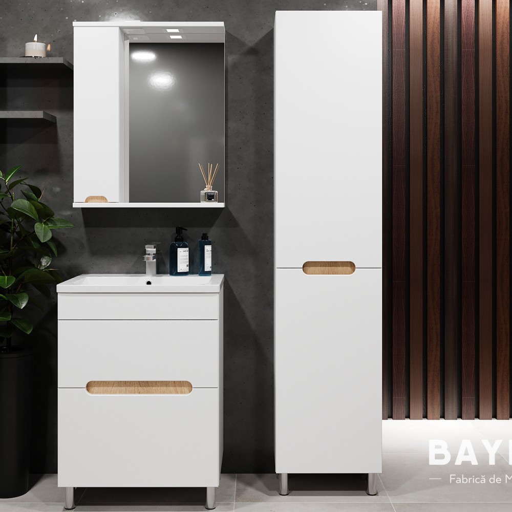 Etna - o serie de mobilier de baie cu design minimalist și forme precise. Lavoarul se remarcă prin simplitate, iar dulapurile - atât cel cu lavoar, cât și cel de tip coloană - putem spune că sunt o adevărată poveste redată într-un set elegant. Mânerele ascunse au inserate elemente, iar contrastul este superb!