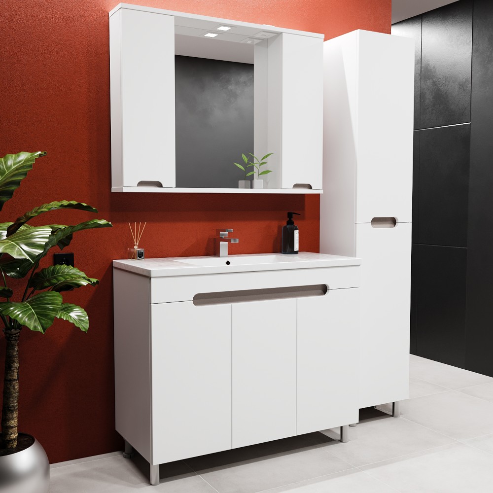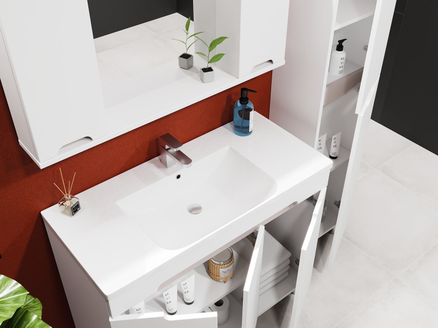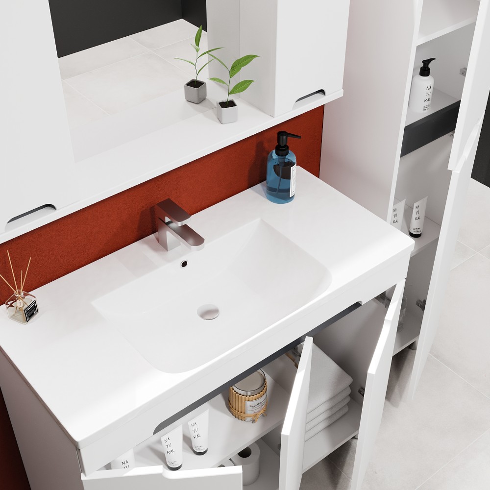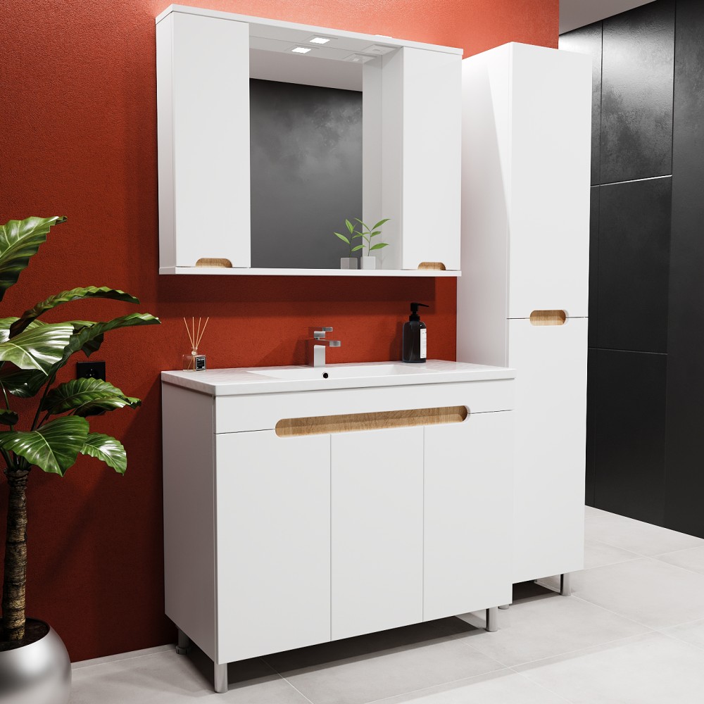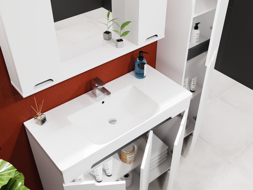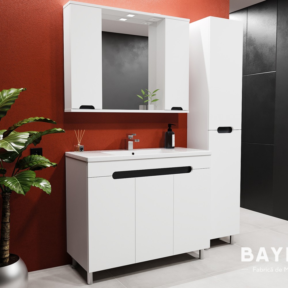 Etna - o serie de mobilier de baie cu design minimalist și forme precise. Lavoarul se remarcă prin simplitate, iar dulapurile - atât cel cu lavoar, cât și cel de tip coloană - putem spune că sunt o adevărată poveste redată într-un set elegant. Mânerele ascunse au inserate elemente, iar contrastul este superb!